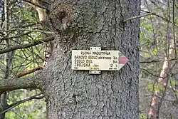 (czerwony, poziomy pasek pomiędzy dwoma paskami białymi) i w terenie wyróżnia się od innych szlaków jedynie odpowiednią informacją, podawaną zwykle na drogowskazach turystycznych. Podobna informacja zamieszczana jest na mapach turystycznych.