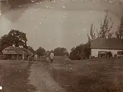 Przed domem rozciągał się gazon, po którego przeciwległej stronie, trochę na lewo, na lekkim wzniesieniu stała podobna w stylu mieszkalna oficyna. Po prawej stronie, w większej odległości od domu stała drewniana kaplica domowa, wyższa od obu domów, wzniesiona na planie prostokąta, z dwuspadowym dachem i czterokolumnowym portykiem na całej swojej szerokości, wspierającym trójkątny szczyt. Koło kaplicy był cmentarzyk rodzinny.