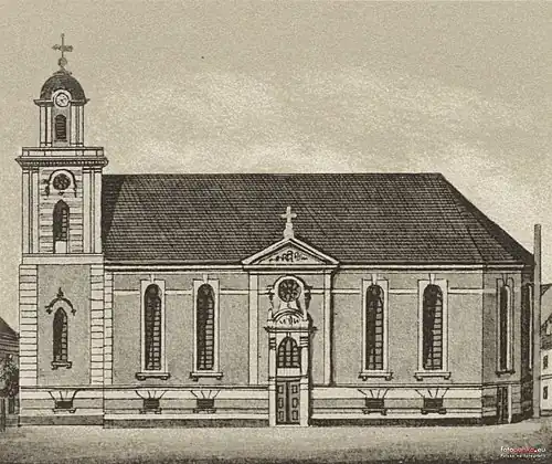 Kościół był drugim dominującym budynkiem Starego Miasta, obok zamku. Wybudowany w 1396 roku, został dwukrotnie przebudowany: w XVI wieku i w 2 połowie XVIII wieku, dzięki czemu zyskał cechy późnego baroku. Od czasów reformacji był w posiadaniu luteran. W 1945, podczas walk o miasto, uległ spaleniu, następnie w latach sześćdziesiątych XX wieku rozebrany. Do dziś zachowały się zarysy murów świątyni wraz z jego posadzką, a także część krypt.