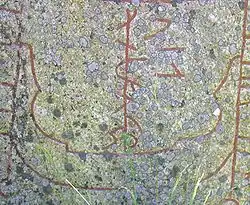 Ligatura run ᛅ i ᚦ na kamieniu z Rök