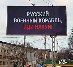 23. Обрано ескіз для поштової марки «Русский военный корабль, иди на#уй!» [online], Ukrposhta, 12 marca 2022 [dostęp 2022-03-13] (ukr.).