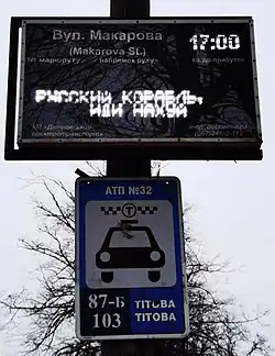 18. Укравтодор демонтує дорожні знаки, мета – заплутати окупанта нецензурною лексикою [online] [dostęp 2022-02-26] (ukr.).