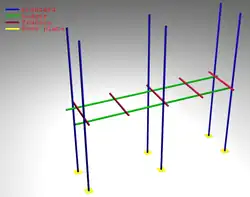 Składają się z połączonych ze sobą pionowych słupów nośnych, do których przymocowane (przykręcone, przywiązane lub przybite) są żerdzie poziome, na których ułożony jest pomost (w najprostszych rozwiązaniach z desek lub innych elementów drewnianych, w konstrukcjach nowocześniejszych – z lekkich metalowych prefabrykatów). Pionowe słupy, dawniej zazwyczaj długie drewniane żerdzie (we wschodniej Azji z powodzeniem wykorzystywano i nadal bywa wykorzystywany do tego celu bambus), obecnie częściej wykonane są ze stalowych rur. Do konstrukcji rusztowań wykorzystuje się także lżejsze od stali aluminium.