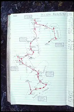 - 1 2 3 4 5 6 7 8 9 10 11 Ryszard Wiktor Schramm, Ruwenzori – historia eksploracji alpinistycznej, [w:] Małgorzata Kiełkowska, Jan Kiełkowski (red.), Wielka encyklopedia gór i alpinizmu, tom V: góry Afryki, Antarktydy, Australii i Oceanii, Katowice: Wydawnictwo STAPIS, 2010, s. 314–317, ISBN 978-83-61050-39-1.