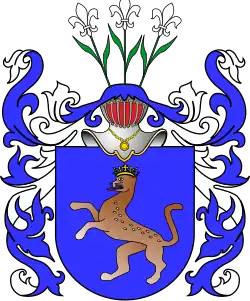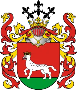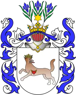 - ↑ Tadeusz Gajl: Herbarz polski od średniowiecza do XX wieku : ponad 4500 herbów szlacheckich 37 tysięcy nazwisk 55 tysięcy rodów. L&L, 2007. ISBN 978-83-60597-10-1.