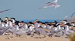 - ↑ J. Martin Collinson i inni, When morphology is not reflected by molecular phylogeny: the case of three ‘orange-billed terns’ Thalasseus maximus, Thalasseus bergii and Thalasseus bengalensis (Charadriiformes: Laridae), „Biological Journal of the Linnean Society”, 121 (2), 2017, s. 439–445, DOI: 10.1093/biolinnean/blw049.