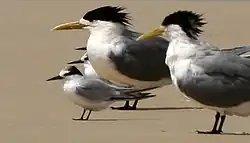 - ↑ Michael Gochfeld, Joanna Burger, Guy M. Kirwan, David Christie & Ernest Garcia: Great Crested Tern (Thalasseus bergii), version 1.0. [w:] J. del Hoyo, A. Elliott, J. Sargatal, D.A. Christie & E. de Juana (red.). Birds of the World [on-line]. Cornell Lab of Ornithology, 30 sierpnia 2017. [dostęp 2021-05-12].