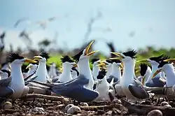 - 1 2 T.A. Walker, A Record Crested Tern Sterna bergii Colony and Concentrated Breeding by Seabirds in the Gulf of Carpentaria, „Emu - Austral Ornithology”, 92 (3), 1992, s. 152–156, DOI: 10.1071/MU992015, ISSN 0158-4197.