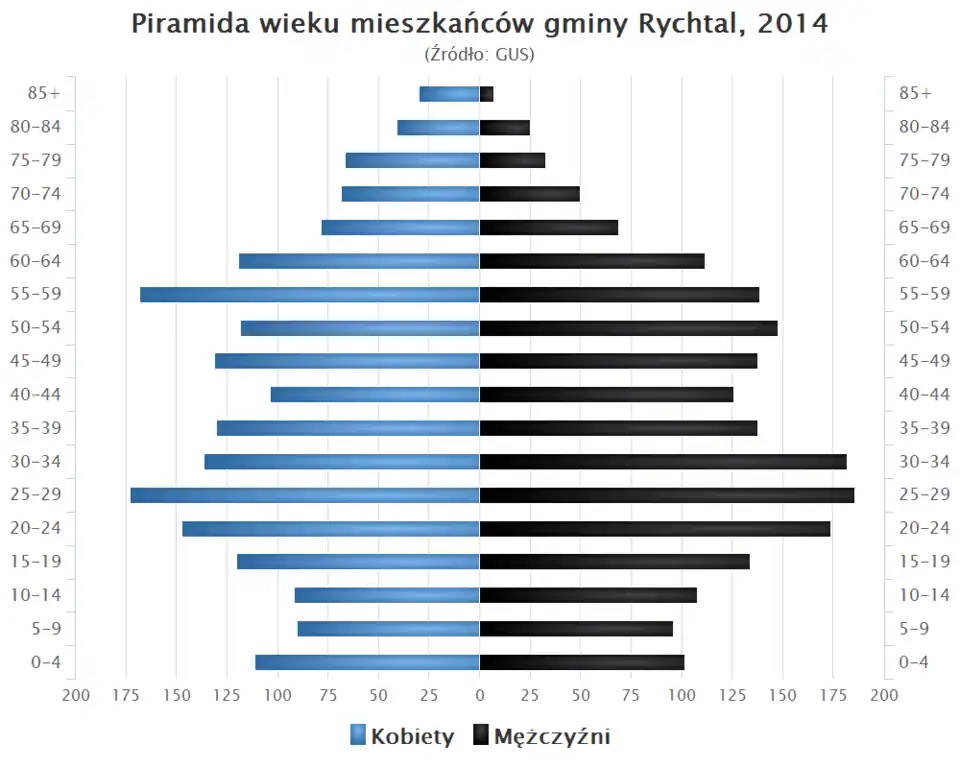 - Piramida wieku mieszkańców gminy Rychtal w 2014 roku[1].