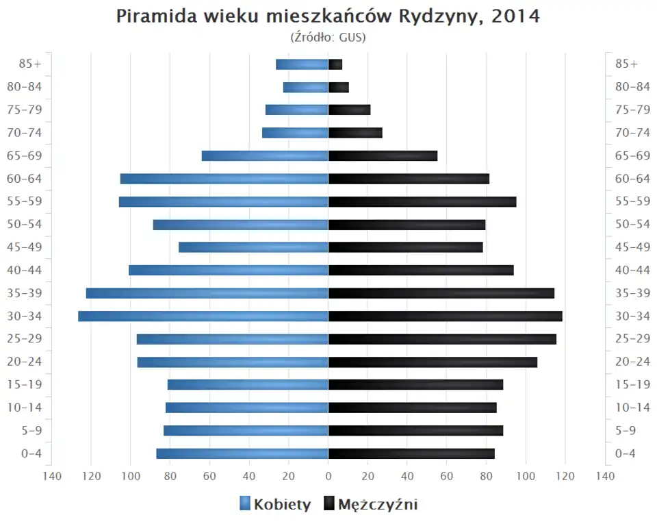 - Piramida wieku mieszkańców Rydzyny w 2014 roku[3].