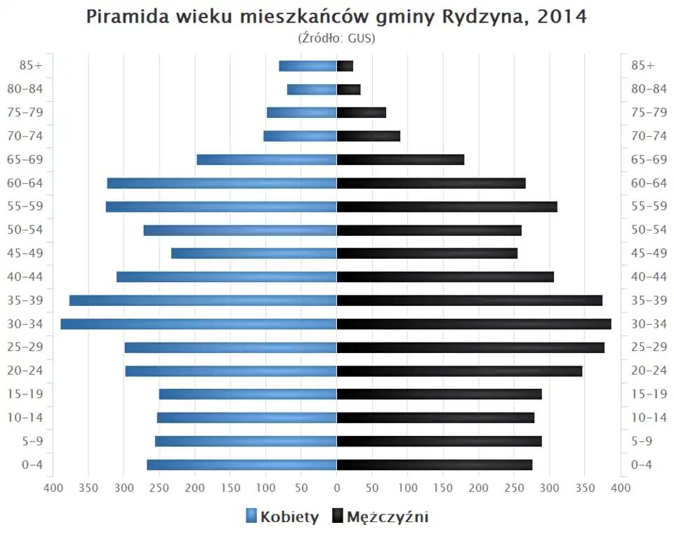 - Piramida wieku mieszkańców gminy Rydzyna w 2014 roku[1].