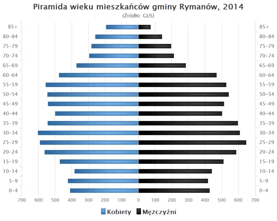 - Piramida wieku mieszkańców gminy Rymanów w 2014 roku[1]