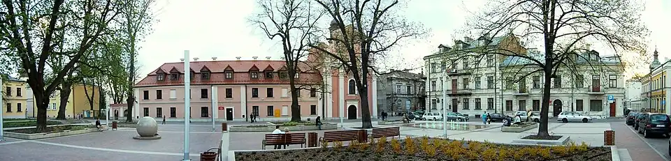 Obecnie zabudowa wokół rynku jest zróżnicowana. Od północy, przy ul. S. Żeromskiego, ciągnie się pas kamienic o zbliżonym, harmonijnym wyglądzie (wchodzących w blok zabudowy z podwórzem i elewacją również od przeciwnej strony, tj. Rynku Wielkiego), po zachodniej stronie (ul. B. Morando) stoją nieco większe, bardziej zróżnicowane kamienice, od wschodu podwórze kamienicy przy ul. Bazyliańskiej, a po południowej stronie, przy ul. T. Kościuszki, stoi najbardziej reprezentatywny w tej części Starego Miasta zespół dawnego kościoła i klasztoru sióstr Klarysek (kościół barokowy, z 1696 r.; klasztor dobudowany w latach 1757–1775). Podobnie jak wiele innych budynków, po zajęciu miasta przez zaborców, zespół ten utracił pierwotny, bogatszy wygląd w związku z przeznaczeniem na funkcje magazynowe i wojskowe; w późniejszym czasie wykorzystywany był na cele kulturalne, a po II wojnie światowej jako dom dziecka. W 2002 r. zdecydowano o przeniesieniu tu państwowej szkoły muzycznej, ale dopiero w 2007 r. te niszczejące budynki objęto gruntownymi pracami remontowymi, dzięki którym już w 2009 r. przywrócono częściowo dawny wygląd kościoła (m.in. fasadę, wieżę, dach oraz szczyty od frontu i z tyłu), jaki pełni funkcję sali koncertowej (zaś w dawnym klasztorze znajdują się miejsca dydaktyczne). Przywrócenie do użyteczności tego gmachu wraz z zupełnie nową funkcją jest kolejnym przykładem procesów rewitalizacji w zamojskiej dzielnicy staromiejskiej.