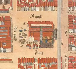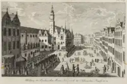 Swoje funkcje komunikacyjne, administracyjne i sądowe Rynek zaczął pełnić dopiero po zniesieniu odrębności prawnej Nowego Miasta. Do końca XIII wieku określenie forum stosowano zarówno do Rynku, jak i do Nowego Targu. Dopiero od 1327 roku zaczęto odróżniać stary targ, czyli Rynek (aldin Markt) od Nowego Targu (nuvin Targ)[14]. W 1350 roku po raz pierwszy pojawiła się nazwa ring, co, jak konstatuje Olgierd Czerner, może być oznaką „ukończenia zabudowań tretu i powstania pierścienia placów na obwodzie placu targowego"[32]. Nobilitacją Rynku było rozpoczęcie w XIII wieku budowy w jego centralnej części ratusza[14].
