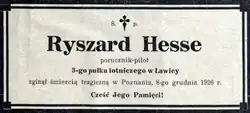 - ↑ Nekrolog. „Lotnik : organ Związku Lotników Polskich”. 13/1926, s. 13, 25 grudnia 1926. Poznań: Związek Lotników Polskich. OCLC 316462134.