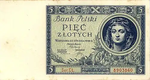 - ↑ Banknoty polskie. Niezwykła historia kraju i pieniądza. Część 20. Cykl przygotowany przez „Gazetę Wyborczą” we współpracy z magazynem historycznym „Mówią wieki”. Warszawa 2006