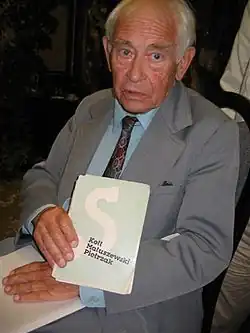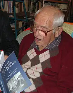 Ryszard Matuszewski prezentuje egzemplarz swojej debiutanckiej książki – Biblioteka Narodowa, Warszawa, 10 września 2004 r.