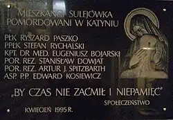 W 55. rocznicę zbrodni katyńskiej, w kwietniu 1995, odsłonięto w kościele pw. Najświętszej Maryi Panny Matki Kościoła w Sulejówku, pamiątkową tablicę poświęconą sześciu zamordowanym w Katyniu mieszkańcom Sulejówka, w tym Ryszardowi Paszko[29].