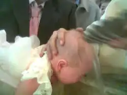 - ↑ Niektóre wspólnoty, jak anabaptyści praktykują chrzest dorosłych, jako uświadomionych w wierze
