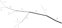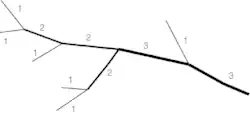 Klasyfikacja Shreve'a[3] Tak jak w klasyfikacji Strahlera odcinki początkowe mają rząd n=1. Dla pozostałych odcinków rzek ich rząd jest równy sumie rzędów jego dopływów.