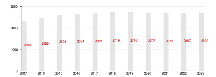 W latach 2007–2018 liczba mieszkańców Rzędzina wzrastała. Tendencja wzrostowa została zaburzona w latach 2019-2021. Od roku 2021 zauważalny jest ponowny wzrost.