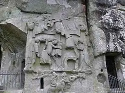 Z Externsteine pochodzi relief ze zdjęciem z krzyża, należący do najbardziej niezwykłych wyobrażeń niemieckiej sztuki romańskiej[19]. Ten niezwykły zabytek, datowany na 1. ćwierć XII wieku, zdobi wykutą w skale kaplicę, konsekrowaną w 1115 roku na miejscu dawnego kultu pogańskiego. Na płaskorzeźbie o wysokości 5,5 m i szerokości ponad 3 m przedstawiono ogromny krzyż, wokół którego rozgrywają się poszczególne sceny. Z lewej Nikodem i Józef zdejmują ciało Chrystusa z krzyża, a obok stoi Maryja. Z prawej jest Jan, pod krzyżem Adam i Ewa. Na końca ramion krzyża przedstawiono słońce i księżyc, a u góry po lewej Boga Ojca lub zmartwychwstałego Chrystusa.
