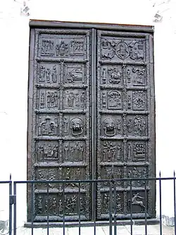 Obok rzeźby kamiennej, z terenem Polski związane są również dwie pary brązowych drzwi, wykonanych poza granicami kraju. Drzwi płockie ufundował biskup Aleksander z Malonne około połowy XII wieku dla katedry w Płocku. W bliżej niewyjaśnionych okolicznościach drzwi trafiły do Nowogrodu Wielkiego, gdzie znajdują się do dziś (w Płocku jest ich XX-wieczna kopia). Odlane zostały w Magdeburgu przez niejakiego Riquinusa. Poszczególne sceny i bordiura odlane zostały osobno i później przybite do drewnianych drzwi. Kompozycja scen jest statyczna, postacie wyodrębnione są z gładkiego tła.