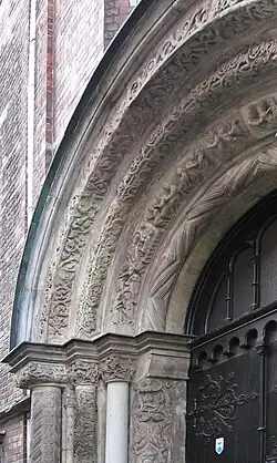 W Niemczech, tak jak i w innych krajach, zdobiono rzeźbiarsko portale i kapitele, choć zazwyczaj były to założenia skromniejsze. Tzw. Galluspforte – portal przy północnym transepcie katedry w Bazylei z końca XII wieku, przetrwał do dziś po wielu renowacjach i poprawkach. Tympanon przedstawia Chrystusa jako Sędziego ze świętymi. Całe założenie otrzymało formę łuku triumfalnego. Na podobnej koncepcji został oparty północny portal z dawnego kościoła opackiego św. Jakuba w Ratyzbonie. Oprócz paru wyjątków brak jest rozbudowanych cykli narracyjnych na kapitelach niemieckich kościołów. Mają one zdobienia roślinne, zwierzęce lub przedstawiają potwory i maski.