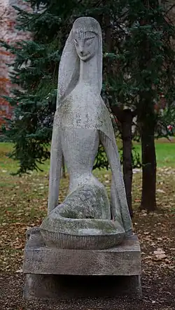 Magdalena Jaroszyńska | 1963-1965 | Rzeźba Syrenka. Wykonana jest ze sztucznego kamienia. Smukła postać Syrenki nawiązuje do faktu, że park powstał ze Społecznego Funduszu Odbudowy Stolicy. Ostatnia renowacja rzeźby w 2006 roku | [3][4] |