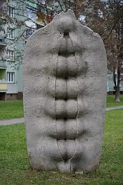 Wincenty Kućma | 1975 | Rzeźba Dojrzewanie II zwana potocznie Groszek. Wykonana jest ze sztucznego kamienia. Jest częścią cyklu autora o tym samym tytule | [3][4] |