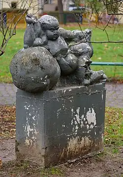 Autor nieznany | lata 60./70. XX w. | Rzeźba Amor lub Putto. Wykonana jest ze sztucznego kamienia. Przedstawia pulchnego chłopca w pozycji półleżącej, opartego na dużej kuli | [3][4] |