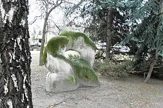 - Obelisk – (niedokończony, ociosany głaz), ul. Dunikowskiego 12