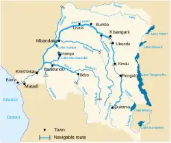 Rzeki w Demokratycznej Republice Konga w zdecydowanej większości uchodzą do Oceanu Atlantyckiego i należą do zlewni rzeki Kongo.