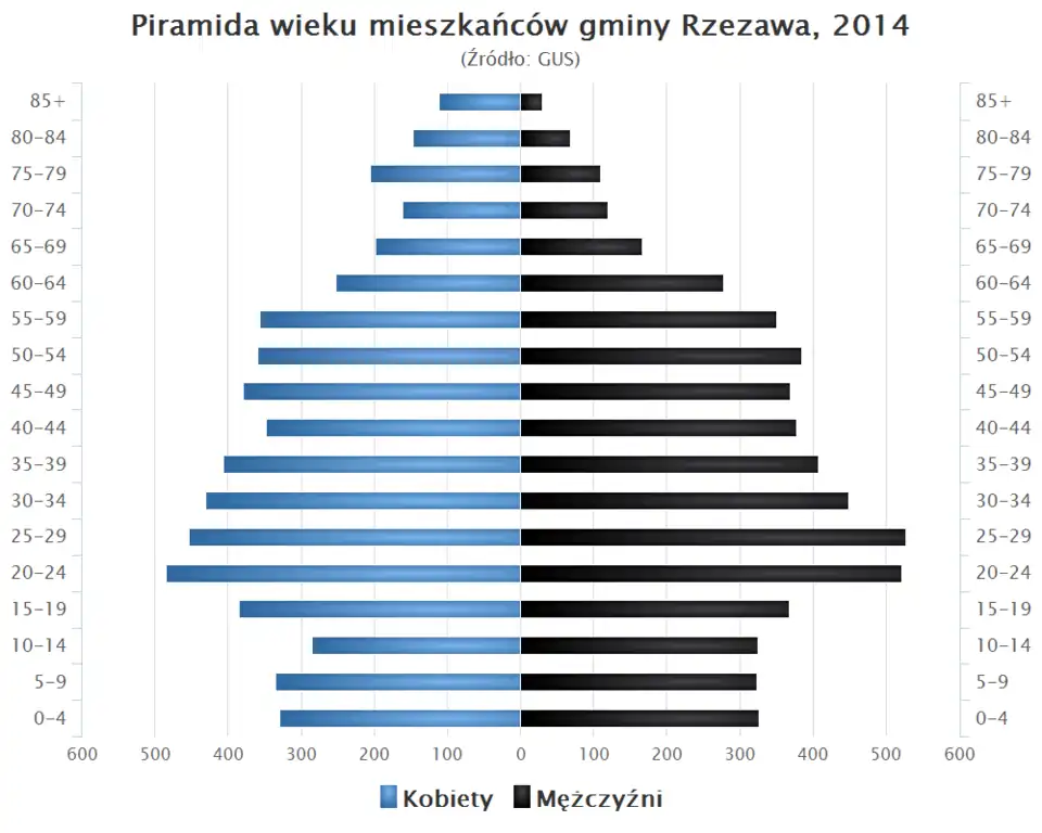 - Piramida wieku mieszkańców gminy Rzezawa w 2014 roku[1].