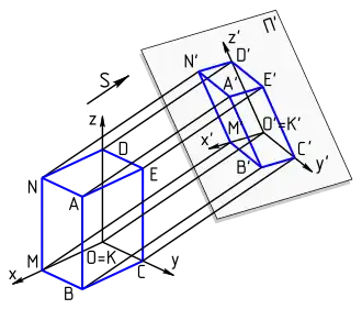 - prostokątny – kierunek rzutowania jest prostopadły do rzutni;