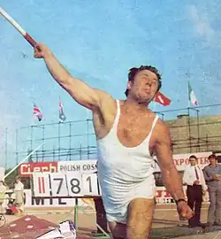 - ↑ Jerzy Szymonek, Janusz Rozum: Osiągnięcia Polskiej Lekkiej Atletyki w 40-leciu PRL. Rzut oszczepem mężczyzn.. Warszawa: Komisja Statystyczna PZLA, 1984.