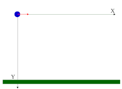 Na ciało działa stała siła o jednakowym kierunku i zwrocie na całym torze ruchu, który przyjmuje się za oś Y układu współrzędnych, jest to kierunek pionowy. Aby uniknąć znaków minus wygodnie jest przyjąć zwrot tej osi w dół. Oś prostopadłą do pola, a zgodną z kierunkiem rzutu oznacza się X, jest to kierunek poziomy.