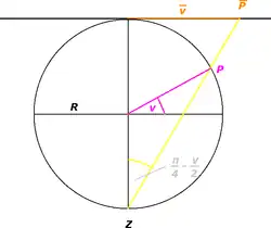 - ↑ Ściśle ujmując, rzutowany okrąg nie może przechodzić przez środek rzutu, ponieważ środek rzutu jest wyłączony z rzutowania (sam ze sobą nie definiuje prostej rzutującej, bo do zdefiniowania prostej niezbędne są dwa różne punkty). W tym przypadku mamy więc rzutowanie okręgu z wyłączonym jednym punktem – stąd cudzysłów.