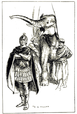 Chociaż wykorzystanie słoni bojowych w obrębie Morza Śródziemnego jest najbardziej znane z wojen punickich (264–146 p.n.e.), między Kartaginą a Rzymem, to prekursorem wprowadzenia słoni bojowych na tym terenie był przede wszystkim król Epiru Pyrrus. Władca sprowadził dwadzieścia słoni, aby zaatakowały nieprzygotowanych do walki z nimi Rzymian w bitwie pod Herakleą w 280 roku p.n.e. Słonie doskonale spełniły swoje zadanie, płosząc rzymskie konie i tratując żołnierzy[2]. W następnym roku Epiroci ponownie rozmieścili podobną liczbę słoni, atakując Rzymian w bitwie pod Ausculum (pyrrusowe zwycięstwo), co wywołało wśród żołnierzy panikę, choć podobno pewnemu centurionowi udało się podbiec do jednego ze słoni i odrąbać mu trąbę mieczem[3].