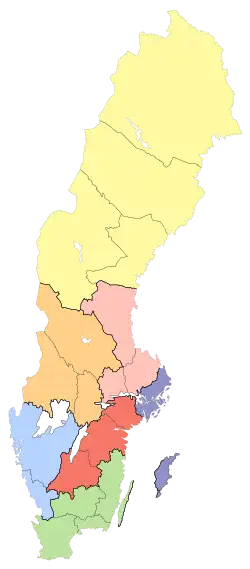 Regionalne biura znajdują się w sześciu lokalizacjach poza Sztokholmem: Umeå, Uppsala, Örebro, Linköping, Göteborg i Malmö[2]. Jednostki regionalne opierają się na granicach geograficznych kilku regionów terytorialnych[4]: