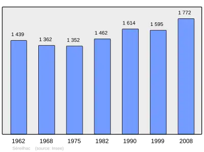 Według danych na rok 1990 gminę zamieszkiwało 1614 osób, a gęstość zaludnienia wynosiła 42 osoby/km² (wśród 747 gmin Limousin Séreilhac plasuje się na 59 miejscu pod względem liczby ludności, natomiast pod względem powierzchni na miejscu 90).