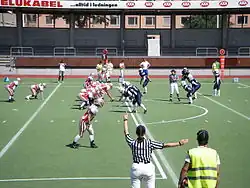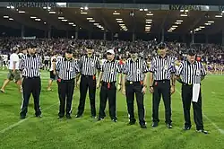Podczas meczów lig zawodowych (najbardziej znana liga NFL) i ligi akademickiej (college football) na boisku znajduje się siedmiu sędziów. Ligi halowe (arena football), szkół średnich i inne używają odmiennych standardów.