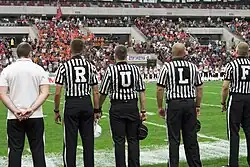 - ↑ Interactive: NFL Officials' Roles and Responsibilities | NFL Football Operations [online], operations.nfl.com [dostęp 2021-01-21].