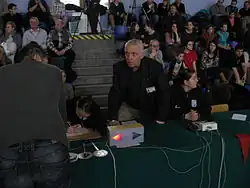 - zajmuje miejsce przy stoliku sędziowskim między sekretarzem i mierzącym czas gry