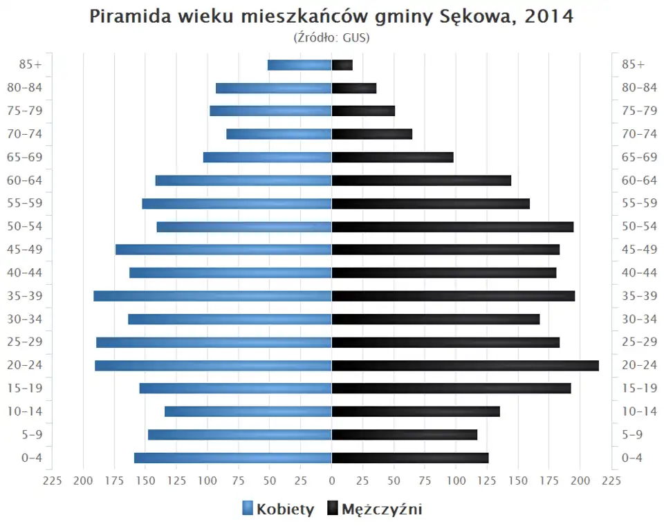 - Piramida wieku mieszkańców gminy Sękowa w 2014 roku[1].