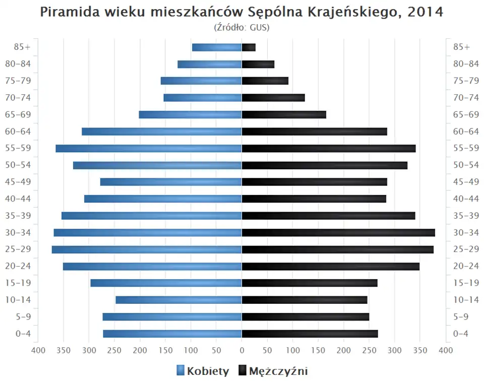 - Piramida wieku mieszkańców Sępólna Krajeńskiego w 2014 roku[11].