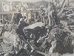 Po dotarciu rankiem następnego dnia po trzęsieniu do Mesyny i pokonaniu problemów z zakotwiczeniem w zniszczonym porcie (na skutek katastrofy zmieniła się topografia portu i „Sława” straciła na nierozpoznanej głębinie jedną z kotwic wraz z łańcuchem[68]), na ląd wysłano najpierw jednego z oficerów dla rozpoznania sytuacji, a następnie niemal całe załogi, z wyjątkiem ludzi niezbędnych do obsługi mechanizmów[66]. Rosjanie wykazali się ogromnym poświęceniem w ratowaniu życia i zdrowia poszkodowanych wszędzie tam, gdzie było to możliwe, gasili pożary i usuwali gruzy[67]. Na „Sławie” zorganizowano szpital, w którym udzielono pomocy około 700 rannym, przewiezionym następnie do Neapolu. W trakcie rejsu dziesięć osób zmarło na pokładzie pancernika i zostało pochowanych w morzu[69].