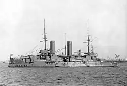 Na początku 1905 roku zakończono prace nad kadłubem okrętu, postępy robót przy uzbrojeniu, siłowni i pozostałych elementach wyposażenia pozostawały na różnym stopniu zaawansowania – odpowiednio około 90, 75 i 10–50%[9]. Jeszcze przed wejściem jednostki do służby wprowadzono pewne zmiany w konstrukcji, uwzględniające doświadczenia wojny rosyjsko-japońskiej, między innymi zrezygnowano z marsów bojowych na masztach[11] i podjęto decyzję o usunięciu uznanych za nieskuteczne lekkich dział pokładowych. 1 maja?/14 maja 1905 roku rozpoczęto próby morskie i jednocześnie pierwszą kampanię morską pancernika[8], chociaż formalne wcielenie okrętu do służby liniowej nastąpiło dopiero w październiku tegoż roku[5].