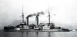 Pancerz poziomy okrętu tworzyły trzy pokłady pancerne: górny grubości do 51 mm w rejonie kazamat śródokręcia, artyleryjski grubości 32 mm na śródokręciu oraz 51 mm na dziobie i na rufie oraz dolny, wykonany ze stali konstrukcyjnej, ze skosami, grubości od 38 do 45 mm[35]. Bojowe stanowisko dowodzenia, o rozmiarach wewnętrznych 5,29 na 3,2 m było chronione płytami pancernymi grubości do 203 mm na ścianach i do 38 mm na dachu[36]. Korytarz wejściowy do stanowiska opancerzały 152 mm płyty ze stali Kruppa. Wieże artylerii głównej miały ściany grubości 254 mm i dachy 51 mm, barbety od 102 do 229 mm, ściany wież artylerii średniej i ich barbety do 152 mm, pancerz czołowy kazamat na pokładzie bateryjnym śródokręcia 76 mm. Masa całego opancerzenia wynosiła 4535 ton, co stanowiło 33,5% projektowanej wyporności normalnej okrętu[35].