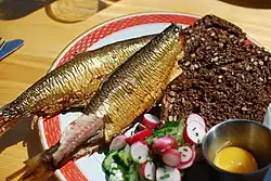 Na kromce ciemnego żytniego chleba zwanego rugbrød[2], posmarowanej duńskim masłem, układa się filet z wędzonego na gorąco śledzia, rzodkiewkę, posypuje się szczypiorkiem, a na środku umieszcza się surowe żółtko jajka kurzego, często w krążku cebuli[1][2]. Jako dodatek serwowana może być sałatka ziemniaczana i piwo[3].